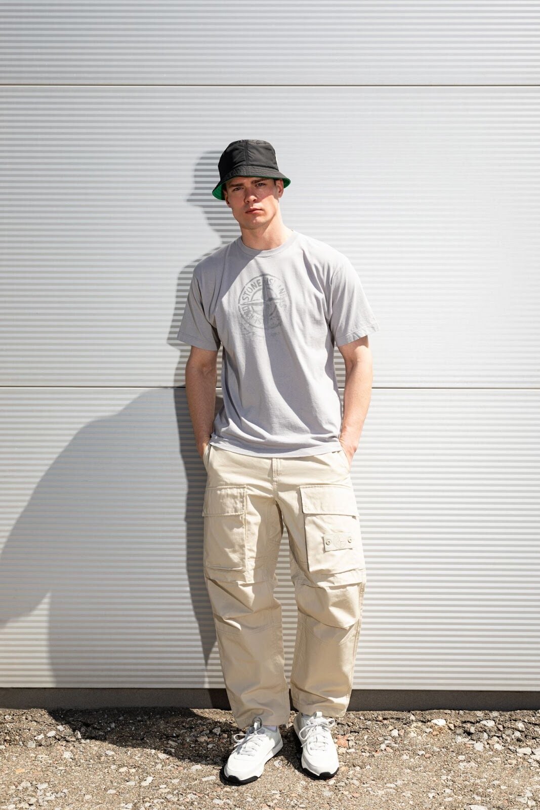 Raso Gommato, відомий своїм інноваційним поєднанням бавовни військового походження та атласного плетіння, є наріжним каменем Stone Island з моменту його появи у 1984 році. Для колекції Spring-Summer 2025 матеріал отримав тришарову версію та спеціальну обробку, яка починається з ванни зі смолою, потім камуфляжним лазером та фарбуванням, що виявляє графічний візерунок тон в тон, надаючи кожному виробу неповторного вигляду та відчуття. Серія кадрів з відео пропонує ближче поглянути на індустріальну, але ремісничу природу процесу, фіксуючи унікальний шлях кожного виробу. Зображення підкреслюють точність машин і трансформацію тканини, демонструючи зближення технологій і майстерності на кожному кроці.