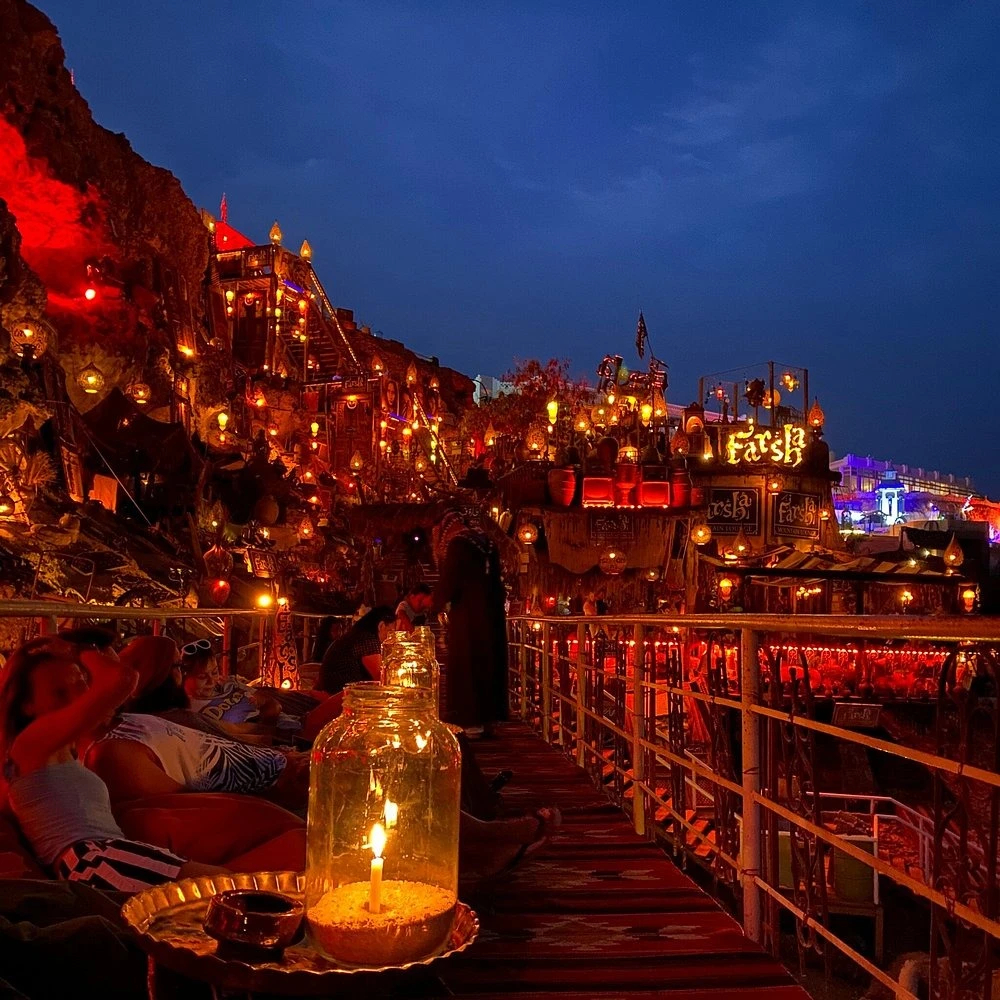 Це місце в районі Хадаба — найбільш «інстаграмна» локація курорту. Кафе врізане у скелю над морем, «завалене» вінтажними лампами, килимами та антикваріатом.