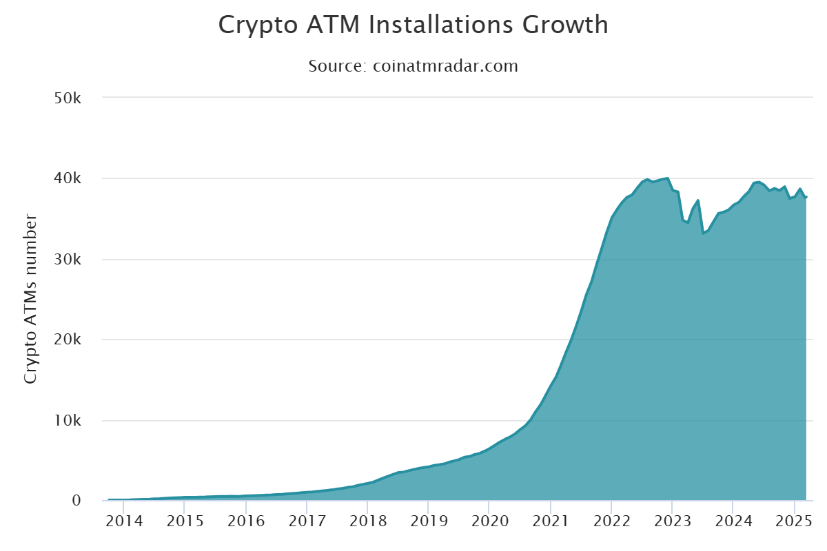 The rise of Bitcoin ATMs reflects the increasing demand for cryptocurrency accessibility. As of today, there are 37,690 Bitcoin ATMs across 69 countries, according to CoinATMRadar. However, the actual number is likely higher due to newly installed but unregistered machines.