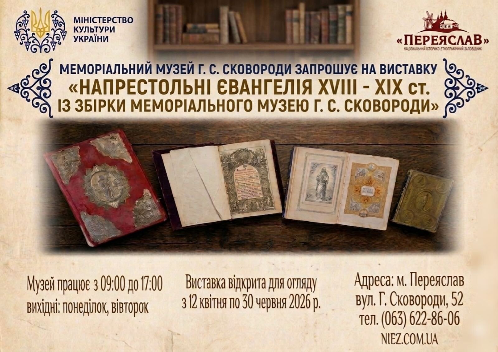 Запрошуємо вас на унікальну виставку «Напрестольні євангелія XVIII-XIX ст.» із колекції Меморіального музею Г.С. Сковороди.