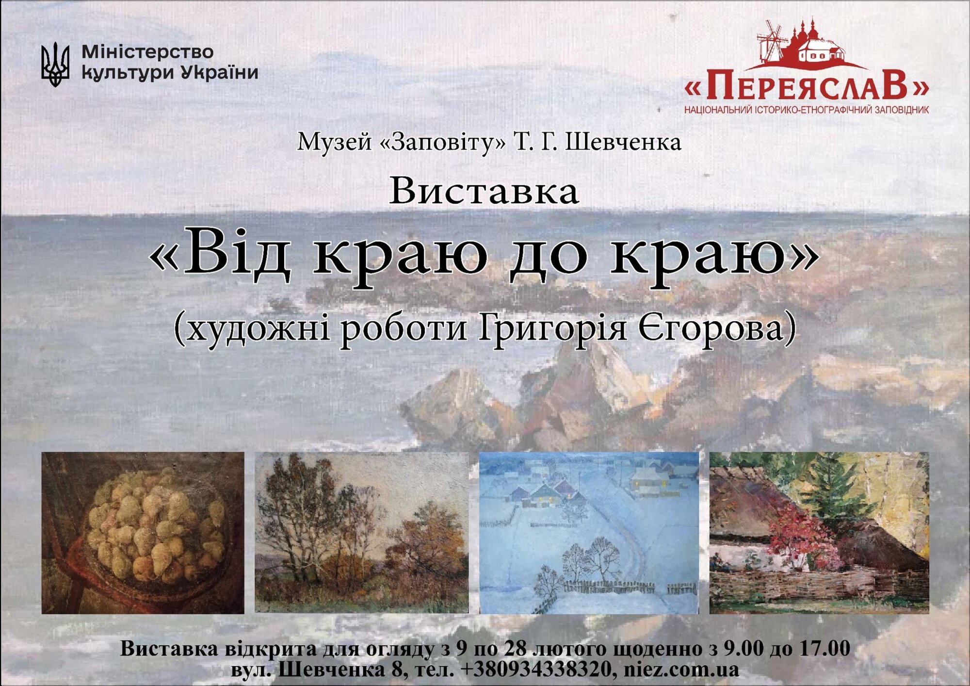 Запрошуємо до Музей Заповіту Т.Г. Шевченка на відкриття виставки "Від краю до краю" (художні роботи Григорія Єгорова).