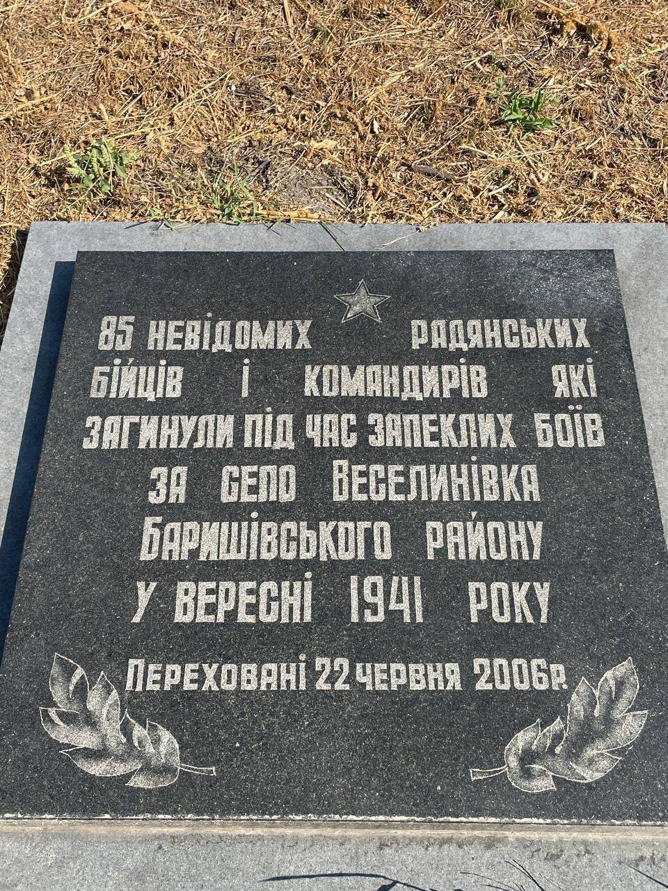Пам’ятник «Атакуючий солдат» - встановлений у 1989 році, один із головних меморіальних символів присвячений воїнам, загиблим у серпні-вересні 1941 року в лютій битв - подія, відома в історії як Баришівський котел. У братській могилі біля меморіалу поховано близько 200 воїнів, які загинули в цих боях.